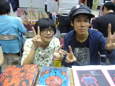 田中六大画伯&後ろは、お東陽先生 田中六大画伯描くところのワタクシとヨメ