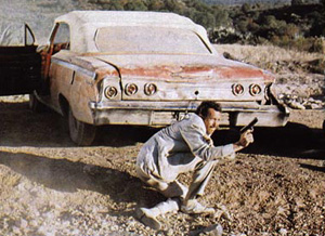 それよりも恋人エリータと育まれる愛の語らいが、なんとも心温まるもので、言葉には出さない表情やしぐささえもが二人が愛し合っているのがよく分かって微笑ましかった。これは後半エリータが犠牲になってからの復讐劇を盛り上げるために必要な伏線であると、ストーリー構成上理解することはもちろん出来るが、銃撃戦よりはよっぽどリアリティを感じられた。旅に出た二人が樹のたもとで結婚を誓い合うシーンが素敵だ。銃撃戦は主人公だけ弾に当らず、相手には当たるから妙だ。